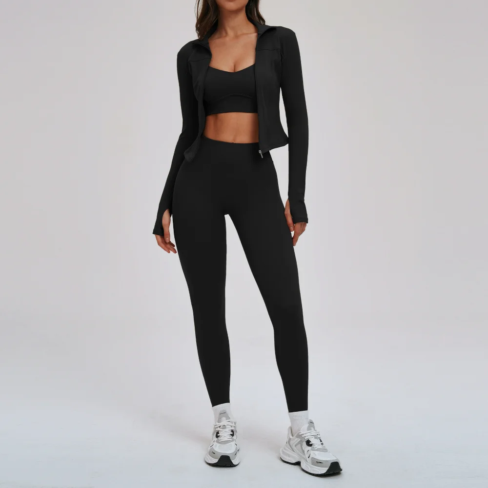 Set sportivo da donna ideale per yoga, palestra e allenamento, composto da 2 o 3 pezzi coordinati con leggings e top a maniche lunghe. Tessuto elasticizzato e traspirante per garantire comfort e libertà di movimento durante ogni esercizio.