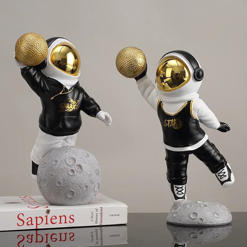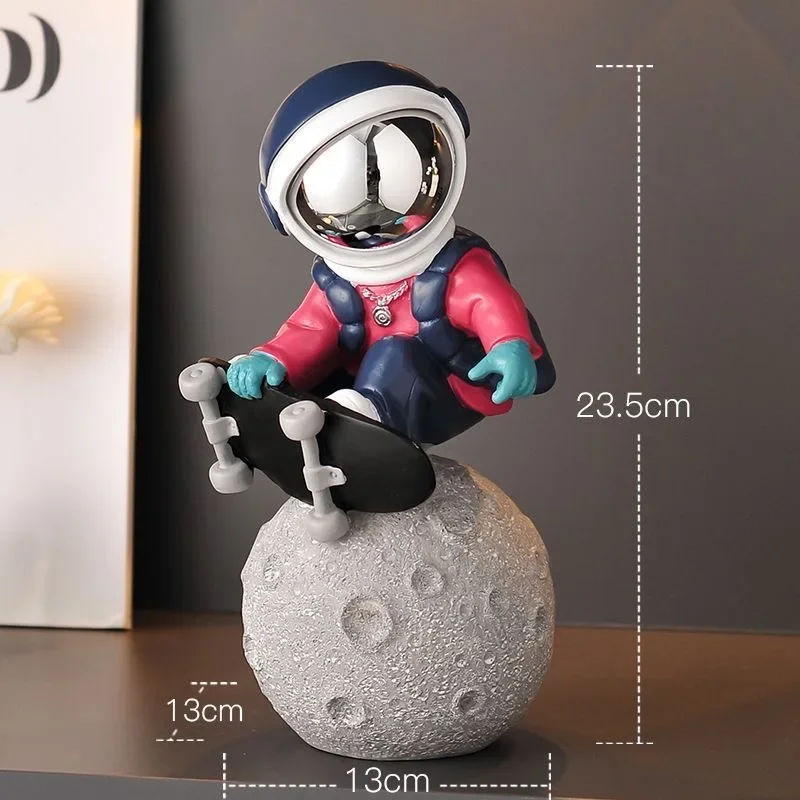 La statua astronauta sportivo in resina è una decorazione originale per camerette, salotti o scrivanie. Aggiunge un tocco divertente e moderno a qualsiasi ambiente, ideale anche come piccolo regalo.