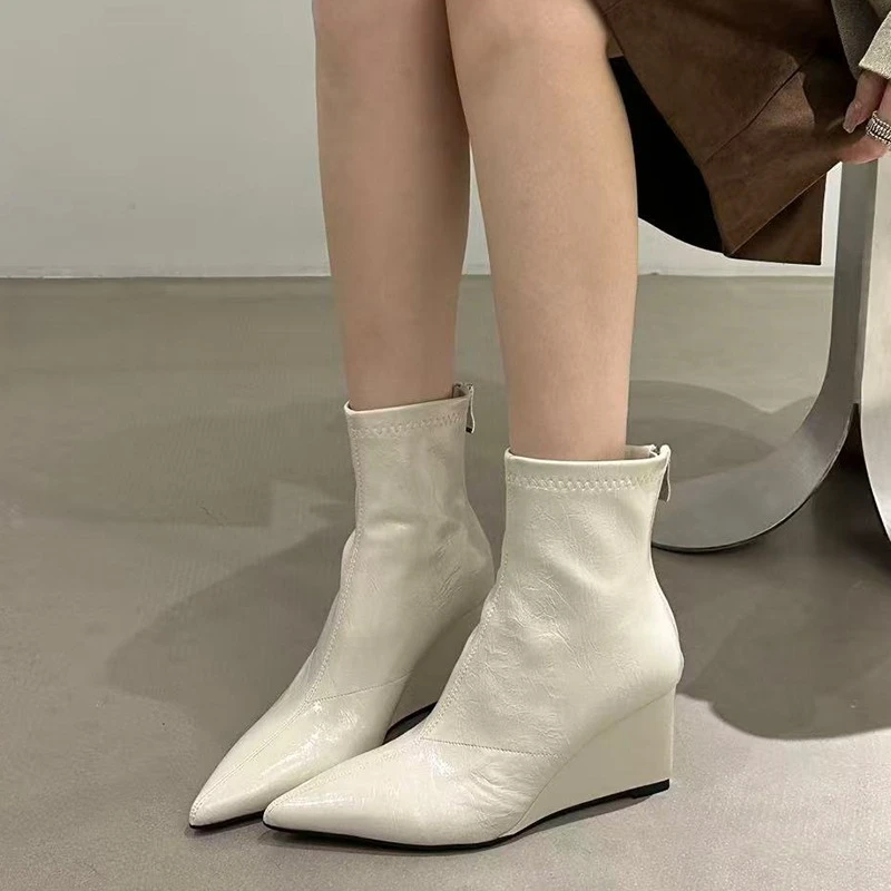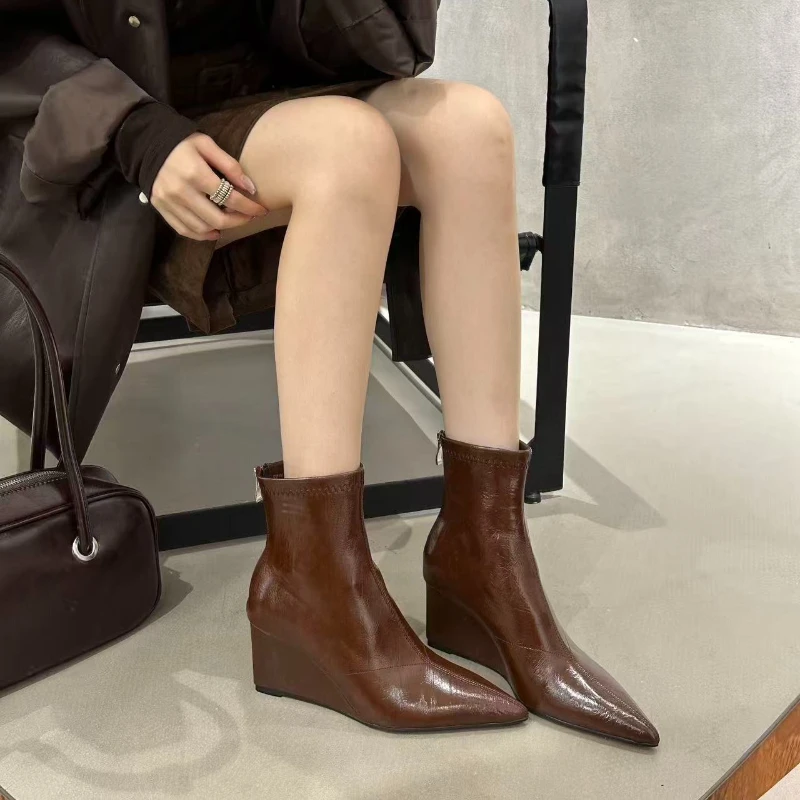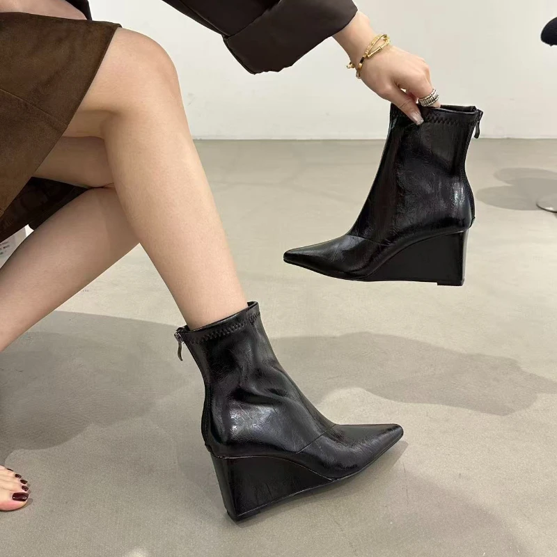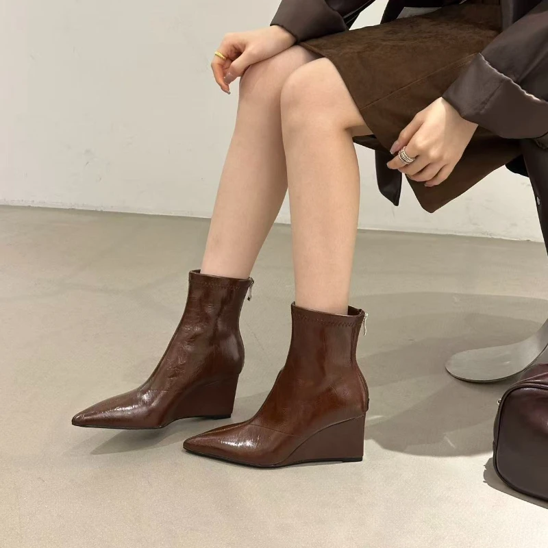 Gli stivaletti donna con tacco a zeppa sono ideali per l’autunno e l’inverno, abbinando stile vintage e comfort quotidiano. La punta affusolata slancia la figura, mentre il tacco a zeppa offre stabilità anche durante l’uso prolungato. Perfetti per l’ufficio, il tempo libero o una serata, si abbinano facilmente a jeans, gonne e vestiti. Consiglio: scegli la tua solita misura e abbinali a calze coprenti nelle giornate più fredde.