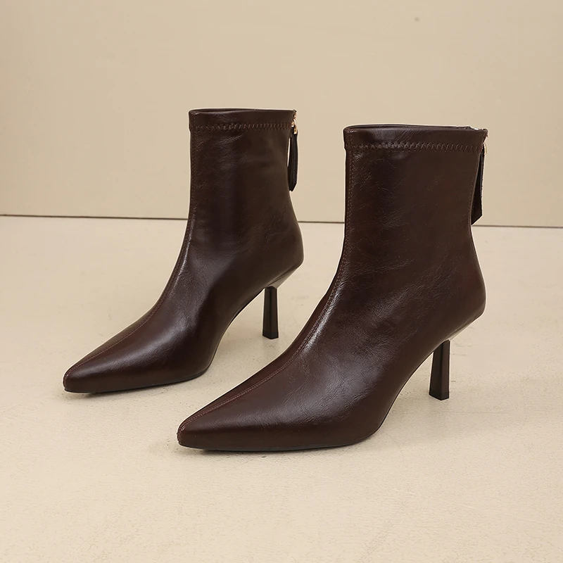 Gli stivaletti donna eleganti a punta con tacco sottile sono perfetti per la stagione autunno inverno, ideali per look da giorno e da sera. La fodera calda in cotone assicura comfort anche nelle giornate più fredde, mentre il tacco slanciato valorizza la silhouette. La punta affusolata dona uno stile moderno e femminile, adatto sia a outfit casual che a serate speciali. Consiglio: abbinali a jeans skinny o a un abito midi per un look versatile e curato.