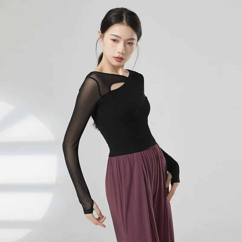 Questo top da ballo donna a maniche lunghe è pensato per allenamenti e coreografie di danza moderna e latino. Il tessuto elasticizzato segue i movimenti e gli inserti in rete donano un tocco elegante e traspirante.