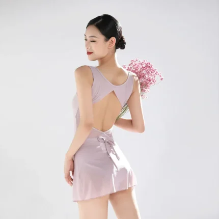 Il body da balletto donna senza schiena è pensato per danza, yoga e ginnastica. Il tessuto elasticizzato segue i movimenti