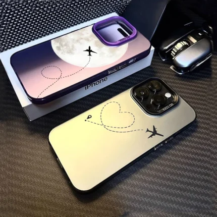 La cover iPhone rigida argento con cuore e aeroplano protegge il telefono con uno stile minimal e moderno. La finitura