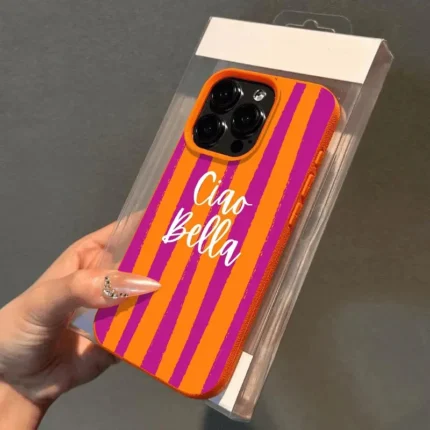 Custodia iPhone a righe arancioni, morbida e antiurto